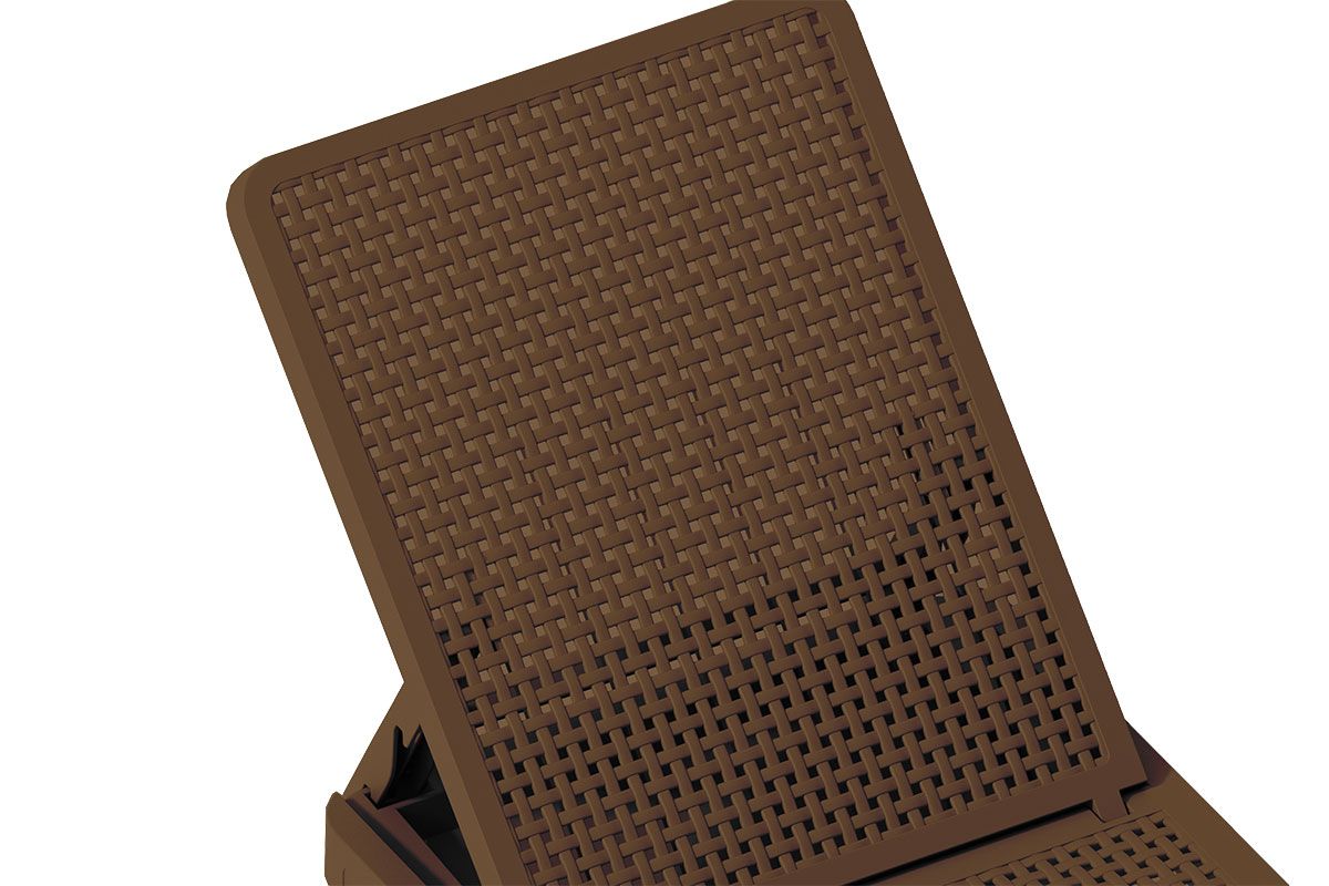 Шезлонг складной – функциональный компактный садовый лежак с поверхностью, напоминающей фактуру плетеного ротанга.