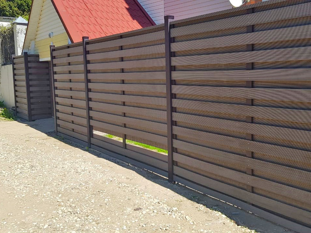 Вентилируемый секционный забор, с алюминиевой опорой. Простой и легкий в монтаже и прочный и надежный на долгие годы.